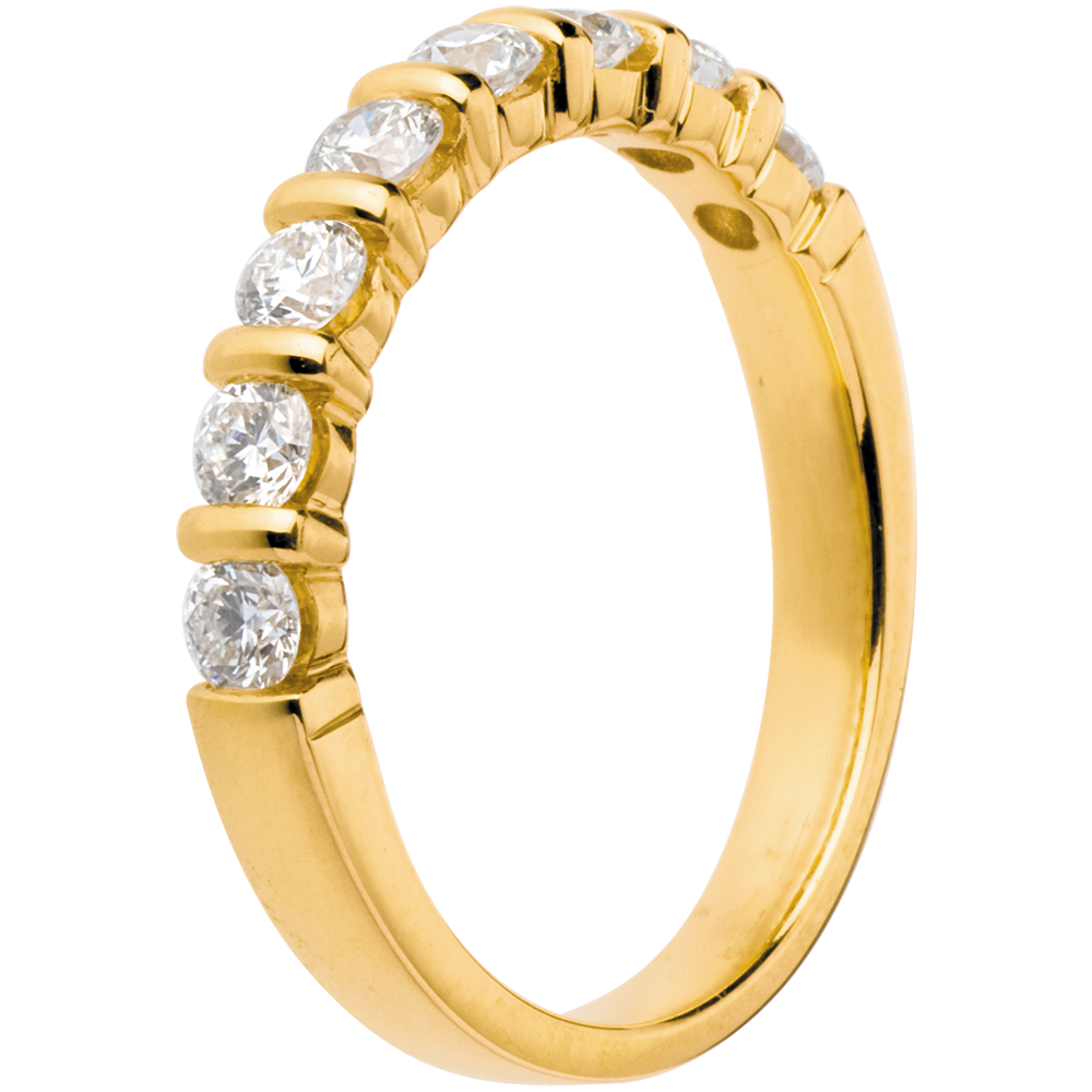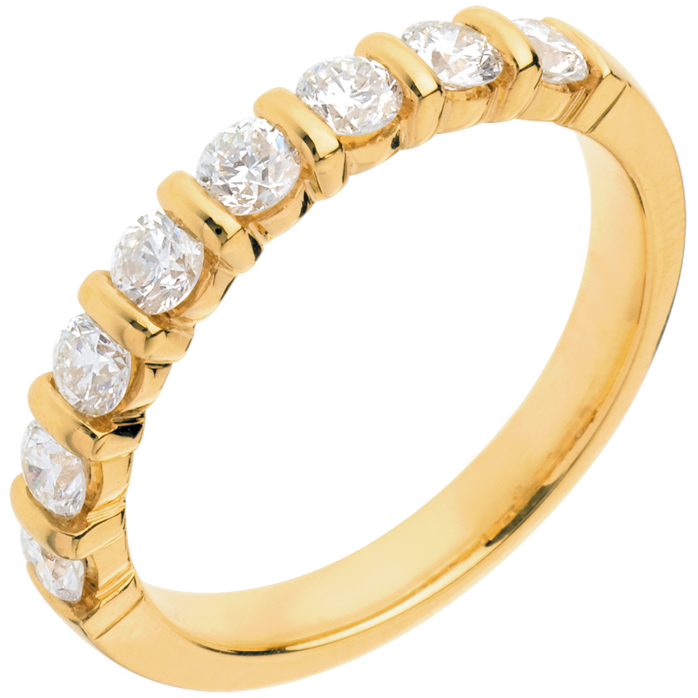 Fede nuziale - Oro giallo semi pavé - 18 carati - 8 Diamanti - incastonatura a barretta - 0.65 carati