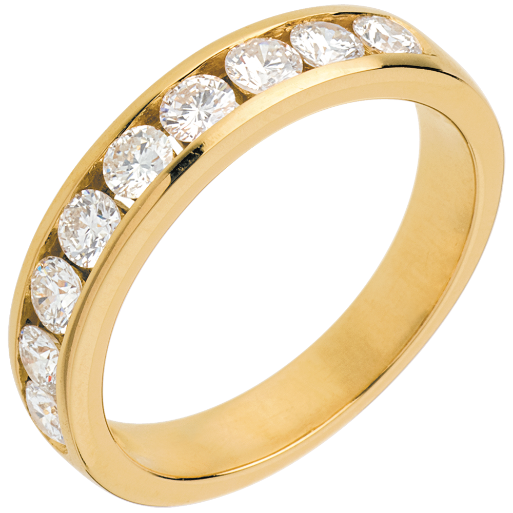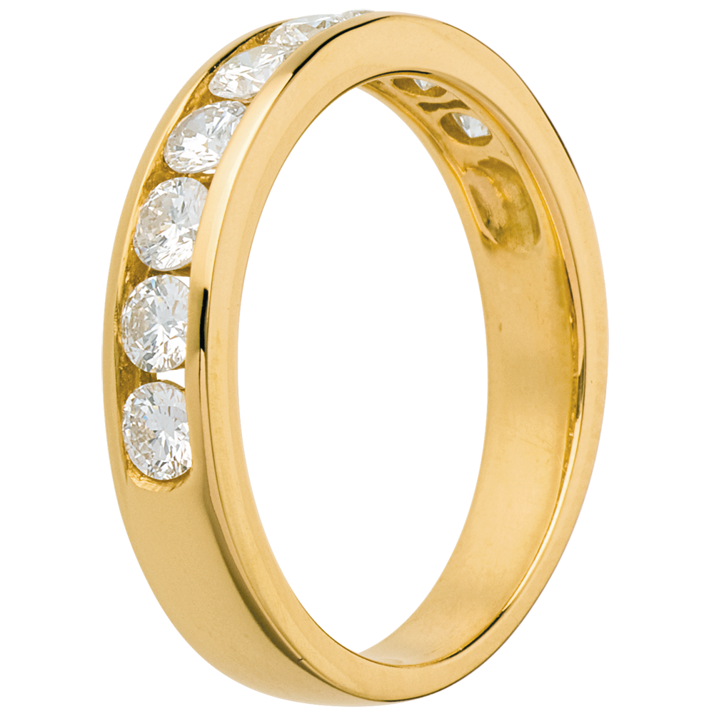 Fede nuziale - Oro giallo semi pavé - 18 carati - 9 Diamanti - incastonatura a binario - 0.75 carati