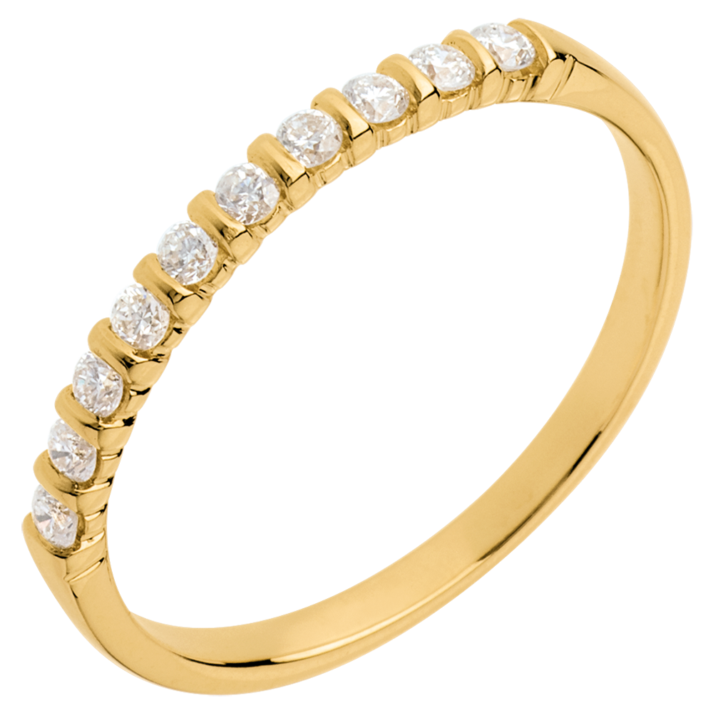 Fede nuziale - Oro giallo semi pavé - 18 carati - 10 Diamanti - incastonatura a barretta - 0.2 carati