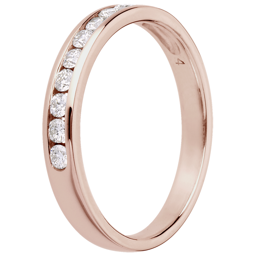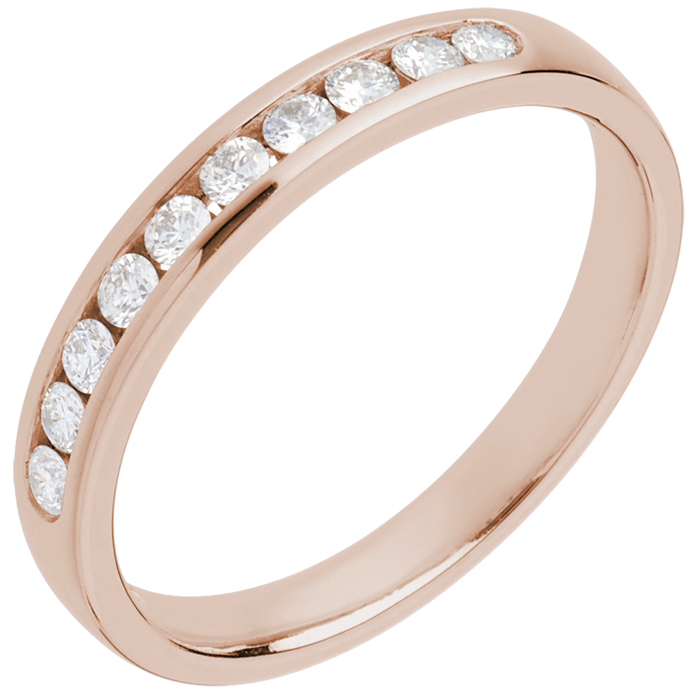 Fede nuziale - Oro rosa semi pavé - 18 carati - 10 Diamanti - incastonatura a binario - 0.25 carati