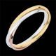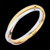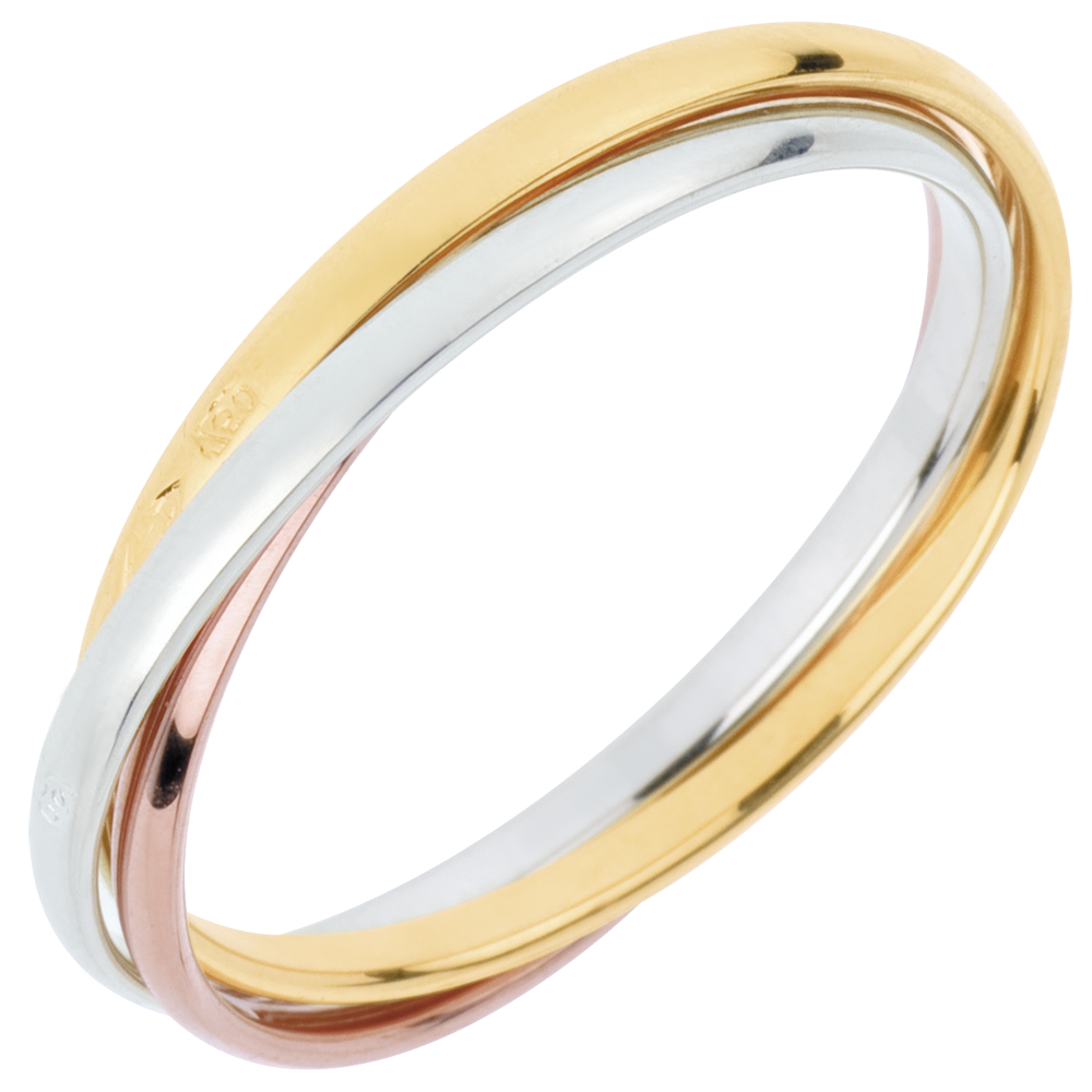 Un anello in oro giallo, uno in oro bianco e un terzo in oro rosa sono uniti per l'eternità.