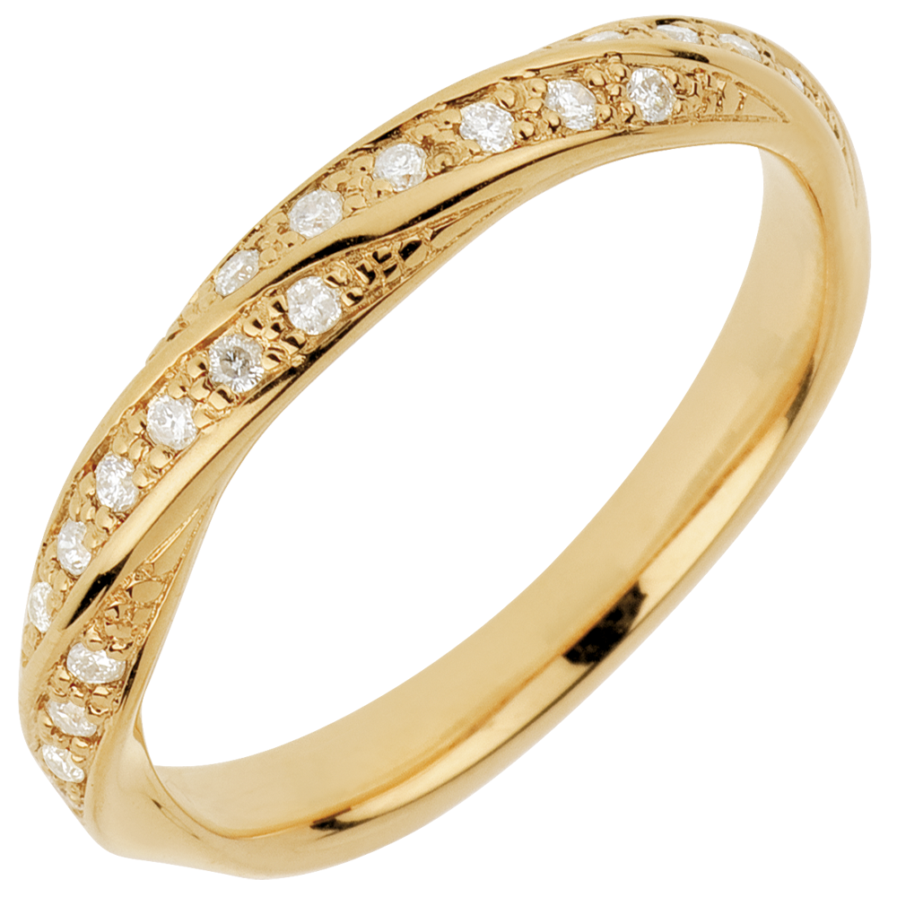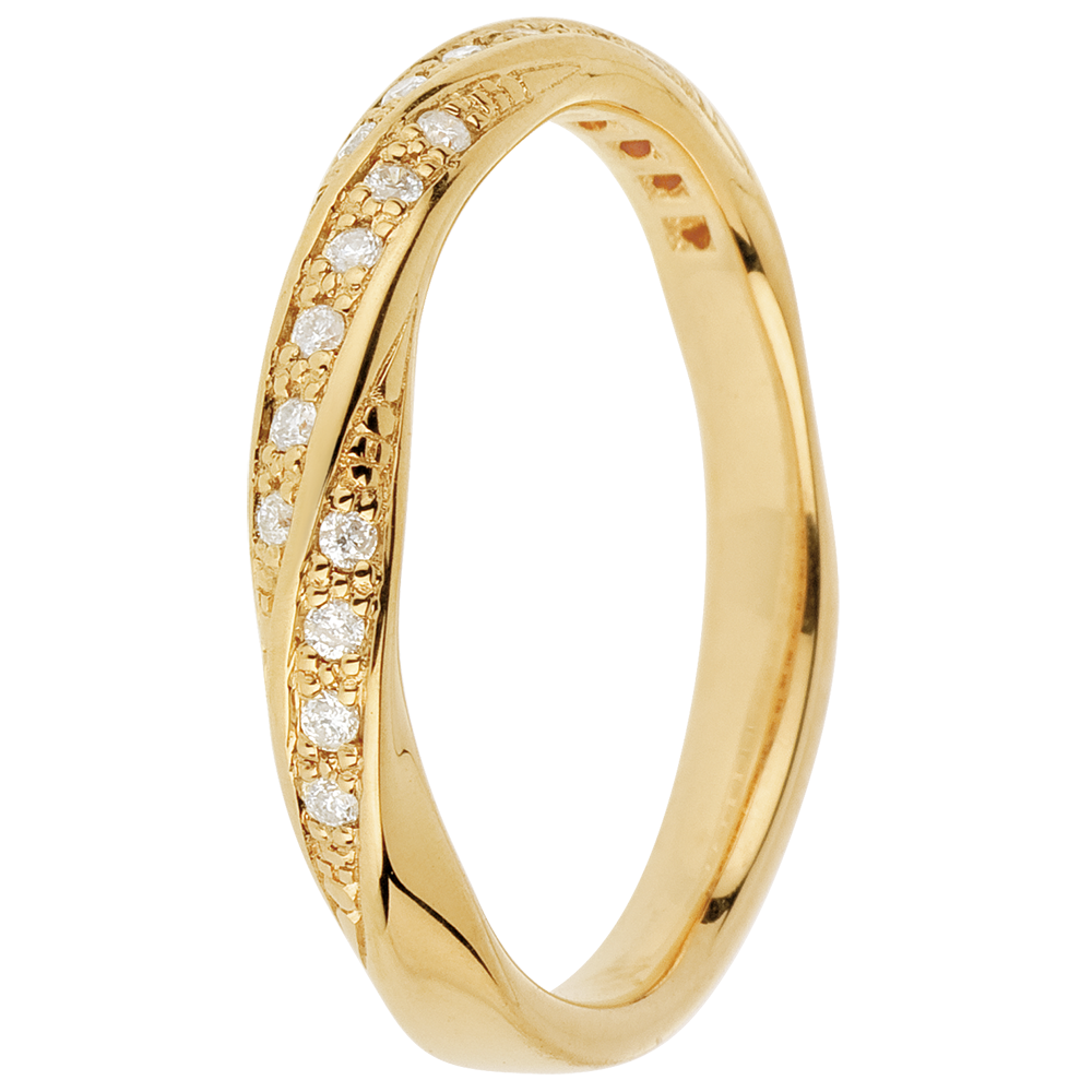 Fede nuziale - Treccia preziosa - Oro giallo - 18 carati - 20 Diamanti - 0.10 carati