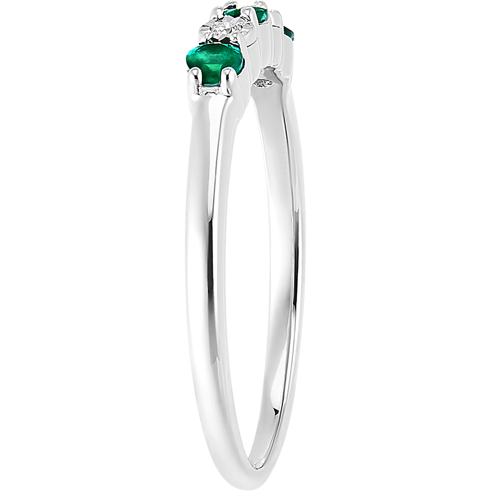Un anello in oro bianco impreziosito da smeraldi e diamanti. Un gioiello classico dal fascino senza tempo, con un tocco di colore.