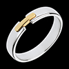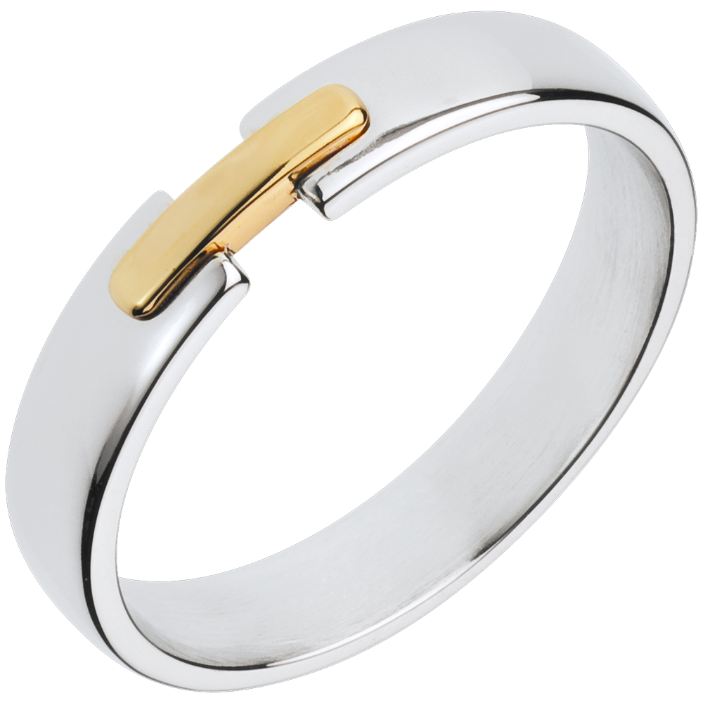 Un anello semplice e raffinato in Oro bianco, unito al centro da un motivo in Oro giallo.