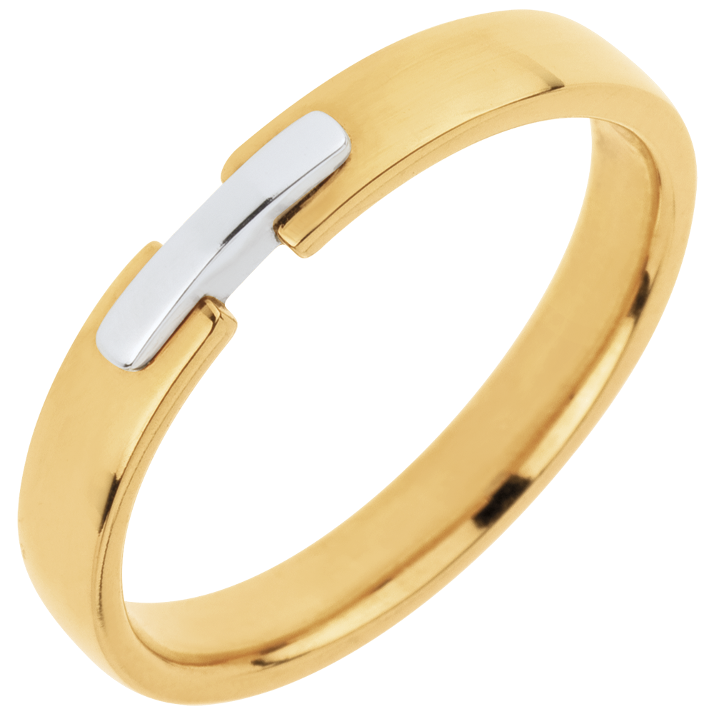 Un anello semplice e raffinato, realizzato in Oro giallo unito al centro da un motivo in Oro bianco.