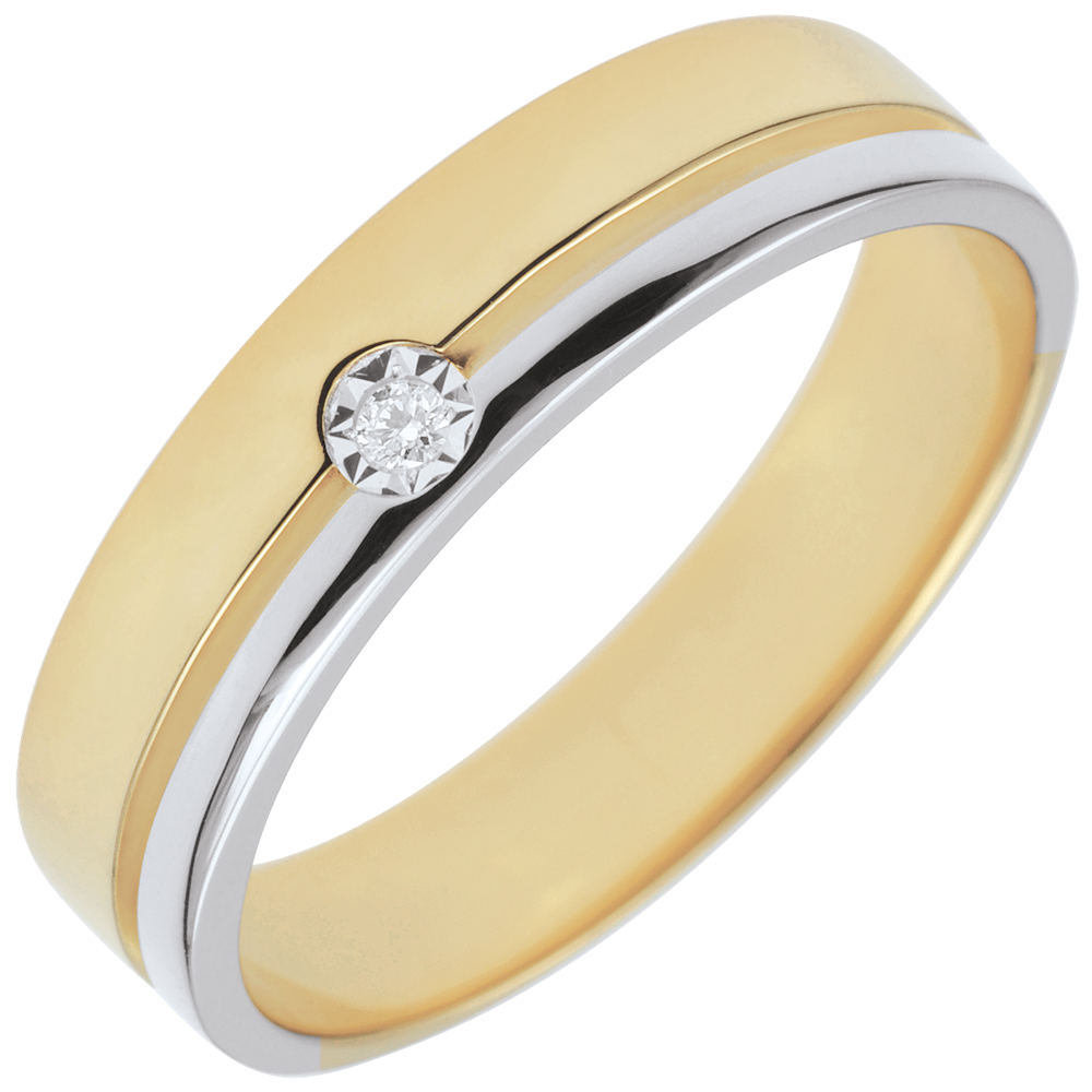 Fede Olympia Diamante - modello medio - Oro bianco e Oro giallo - 9 carati - Diamante