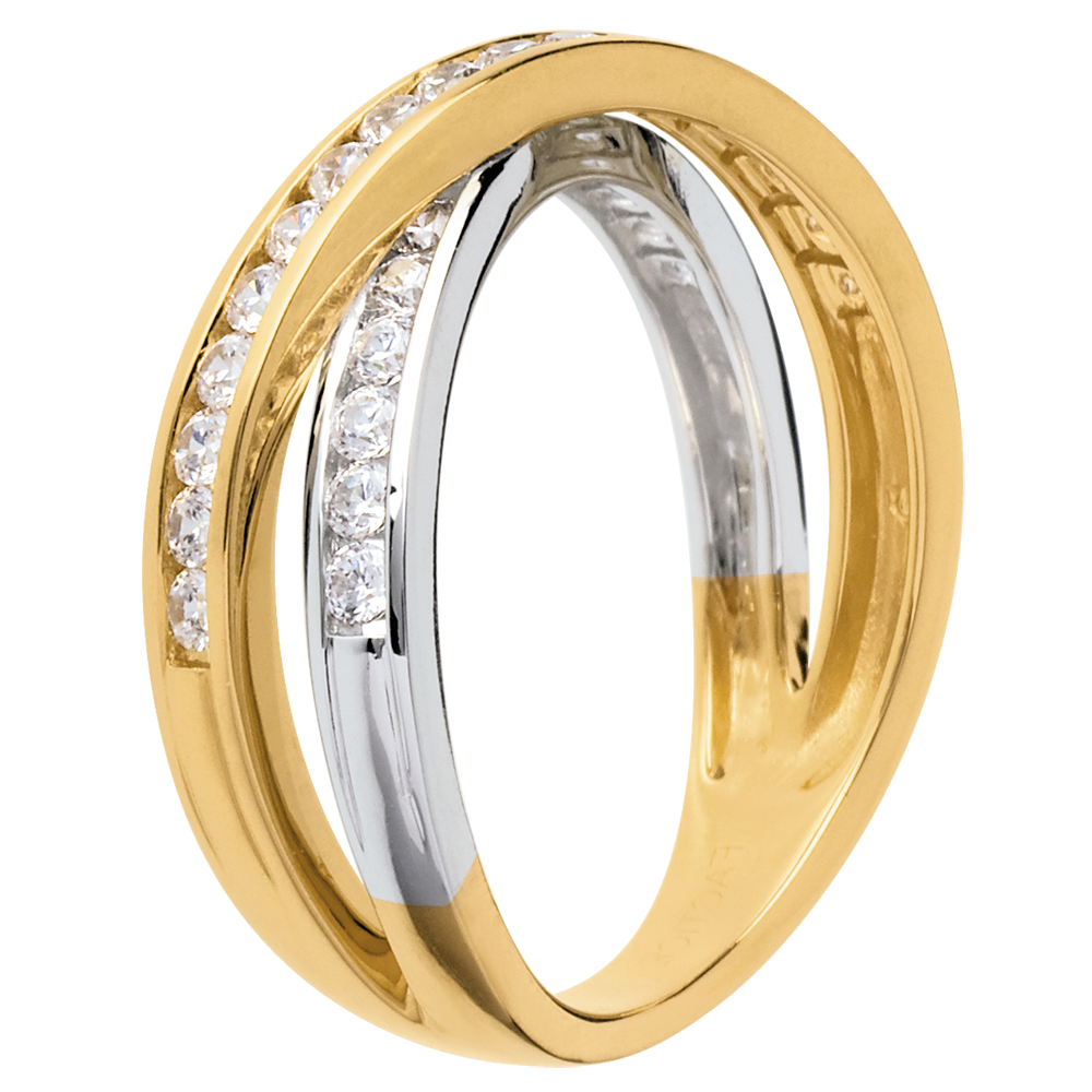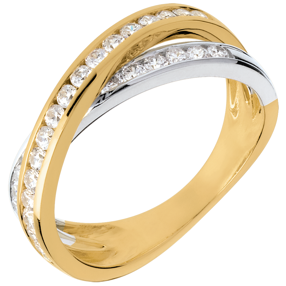 Fede Tandem pavé - Oro bianco e Oro giallo - 18 carati - 29 Diamanti - 0.52 carati