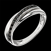 La fede equilibrata di due anelli oro bianco sottolineati da una lastricazione di diamanti neri.