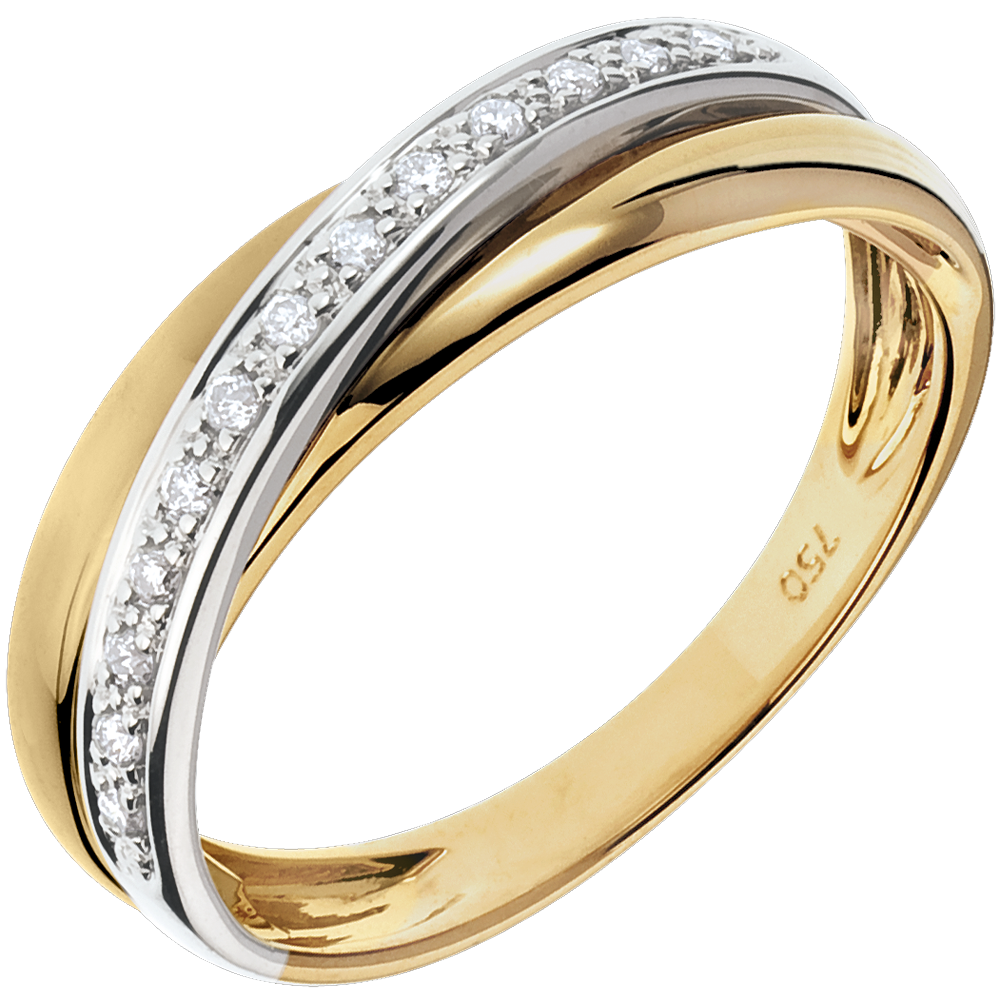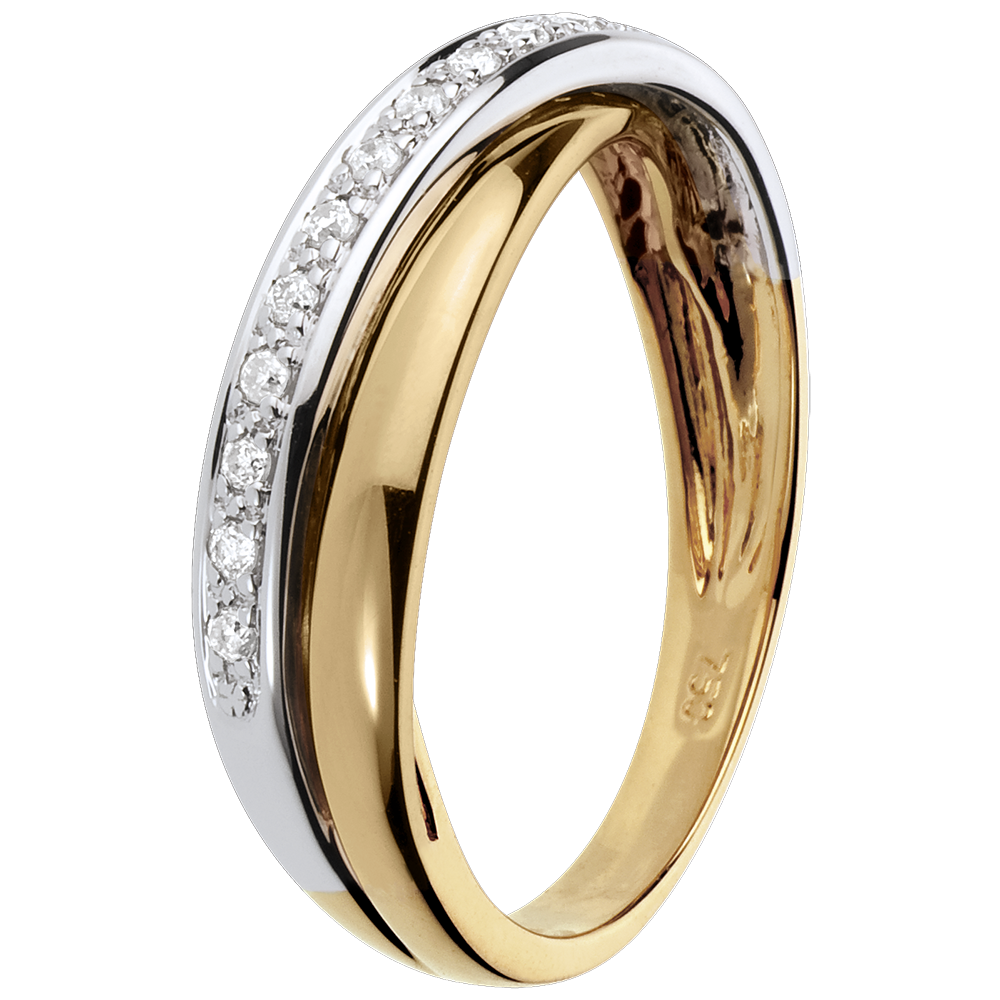 Anello Saturno Diamante - oro giallo e oro bianco - 9 carati