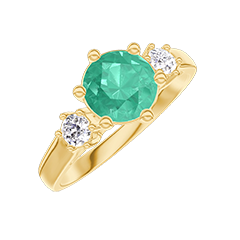 Anello Oro giallo 18 carati - Smeraldo sintetico Rotonda 0.7 Carati - Pietre laterali Diamante di laboratorio