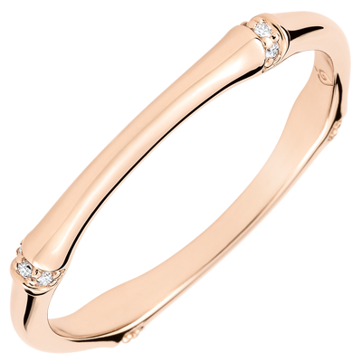 Un ramo di bambù solido e flessibile si trasforma in un anello d'oro rosa incastonato di diamanti dal fascino eterno.