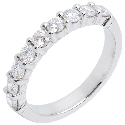 Fede nuziale - Oro bianco semi pavé - 18 carati - 9 Diamanti - incastonatura a griffe - 0.75 carati