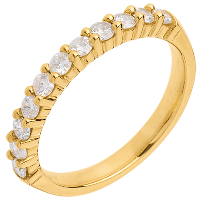 Fede nuziale - Oro giallo semi pavé - 18 carati - 11 Diamanti - incastonatura a griffe - 0.5 carati