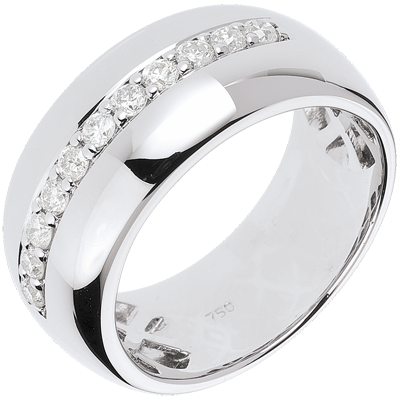 Un largo anello in Oro bianco tempestato di diamanti lussuoso e brillante.