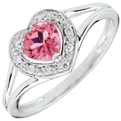 Anello Cuore Incantato - Oro bianco - 9 carati - 10 Diamanti - Turmalina rosa