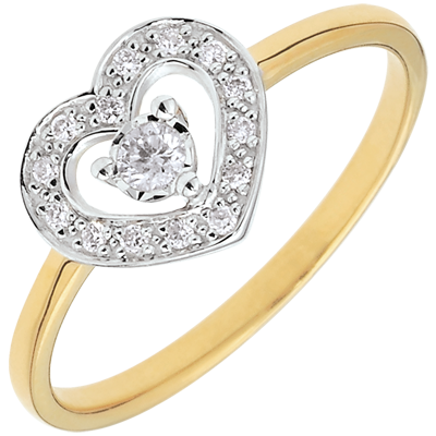 Anello Cuore Tiphanie - Oro bianco e Oro giallo - 18 carati - 15 Diamanti - 0.10 carati