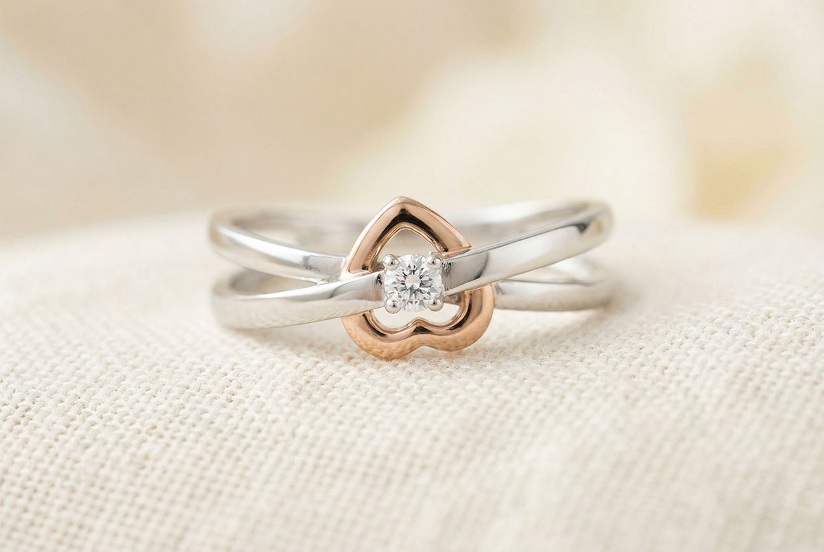 Anello Cuore volteggio - Oro rosa e Oro bianco - 9 carati - Diamante