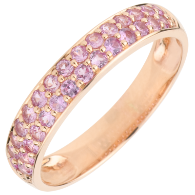 Anello Uccello del Paradiso - due file - Oro rosa - 9 carati - Zaffiro rosa