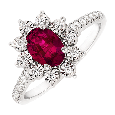 ETERNO EDELWEISS N. 4Anello Fiore - Oro bianco 9 carati - Rubino sintetico, Diamante di laboratorio ID : 1647