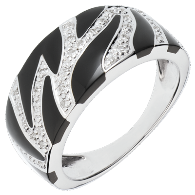 Anello Felino Selvaggio - Oro bianco - 18 carati - Lacca nera e 33 Diamanti - 0.14 carati