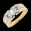 Il design esclusivo raffigura un corsetto in oro giallo circondato da oro bianco, annodato da un delicato fiocco pavé di 16 diamanti bianchi.