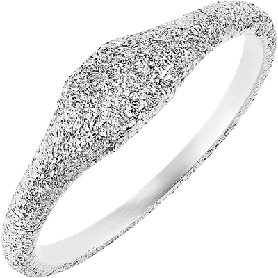 Un anello in oro bianco con lavorazione effetto diamantato, per un mood assolutamente moderno.