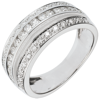 Un anello ricco e sontuoso come la via Lattea, formato da file di di diamanti su Oro bianco.