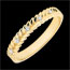 L’anello è realizzato in oro giallo 18 carati, con un peso minimo di 2,3 g, e incastonato con 5 diamanti naturali di qualità HSI per un totale di 0,025 carati.