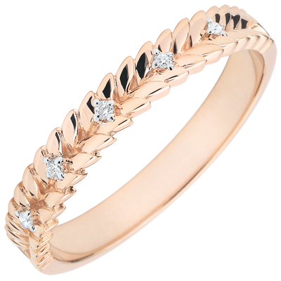 Delicati diamanti s'insinuano nel fogliame d'oro intrecciato di questo anello in oro rosa.
