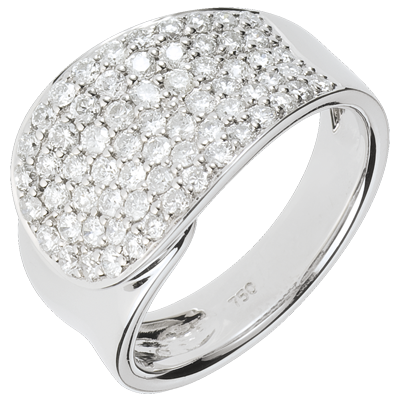 Un anello in Oro bianco magnificato da una preziosa fascia di diamanti.