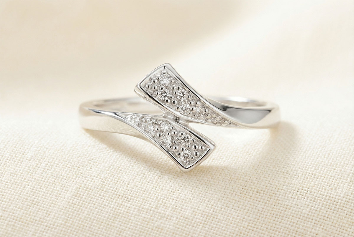 Anello Nastro - Oro bianco pavé - 18 carati - 10 Diamanti