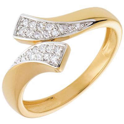 Anello Nastro - Oro giallo e Oro bianco pavé - 18 carati - 24 Diamanti - 0.12 carati