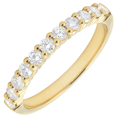 Fede nuziale - Oro giallo semi pavé -18 carati - 11 Diamanti - incastonatura a griffe - 0.4 carati