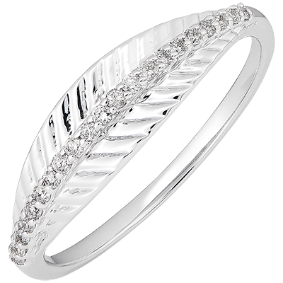 GIUNGLA SACRA N. 8Anello Foglie - Oro bianco 9 carati - Diamante ID : 2092