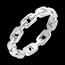 L'unione della finezza del metallo prezioso e della struttura grafica delle maglie crea un gioiello moderno e simbolico, perfetto per celebrare un legame forte.