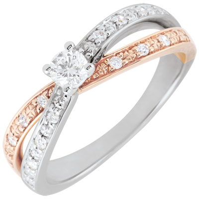 Anello Solitario Saturno Duo doppio diamante - Oro rosa e Oro bianco - 18 carati - Diamanti - 0.246 carati