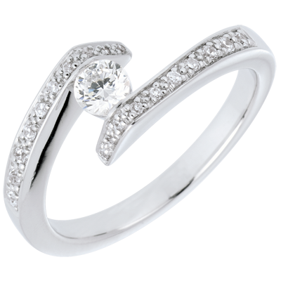 Anello Solitario Promessa - Oro bianco - 18 carati - 21 Diamanti -0.35 carati