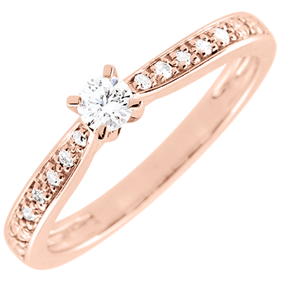 Anello solitario Garlane - 4 griffe - Oro rosa - 9 carati - 11 Diamanti - 0.15 carati - Diamante centrale - 0.10 carati