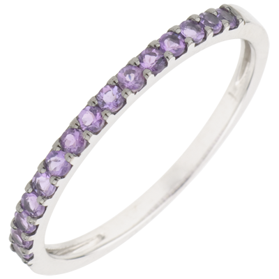 Anello Uccello del Paradiso - una fila - Oro bianco - 9 carati - Ametista