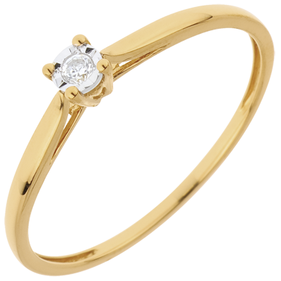 Anello Solitario Ramoscello Essenziale - 0.03 carati - Oro giallo 9 carati