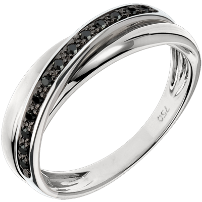 Anello Saturno Diamante - 13 diamanti neri e oro bianco - 9 carati