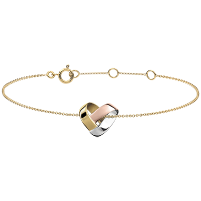 Il cuore, icona della gioielleria, è rivisitato da Edenly in versione origami, con i tre ori che si intrecciano in modo originale ed elegante. Un braccialetto pieno di dolcezza per un tocco delicato al vostro polso.