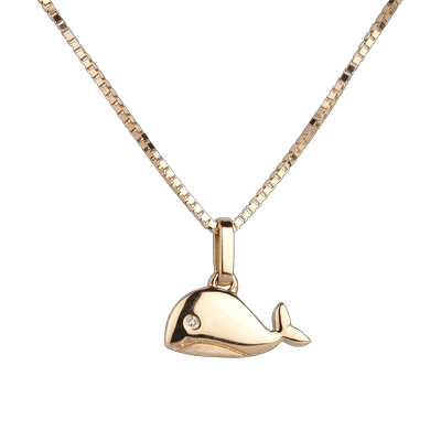 Una piccola balena gioviale e rotonda per accompagnare tutte le vostre avventure. Oro giallo e occhio in diamante. Modello grande.