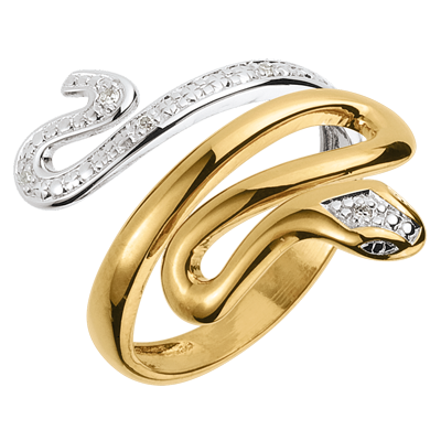 5 diamanti: 0.02 carati - Oro bianco e oro giallo (9 carati= 375/1000): 2.1 g.