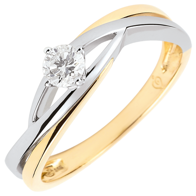 Anello solitario Nido Prezioso - Daria - Diamante 0.15 carati -Oro bianco e giallo 9 carati