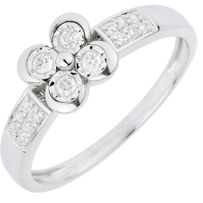 4 diamanti sono il cuore di un quadrifoglio prezioso su una montatura impreziosita da diamanti taglio brillante.