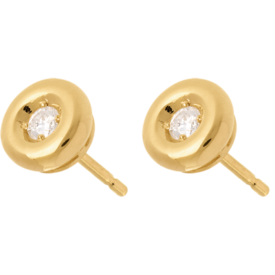 Un diamante custodito in un nido d'Oro giallo, per degli orecchini a lobo rotondi e delicati.