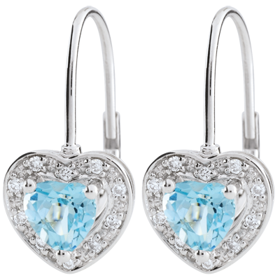 Orecchini Cuore Incantato - Oro bianco - 18 carati - 20 Diamanti - Topazio blu - 1.19 carati