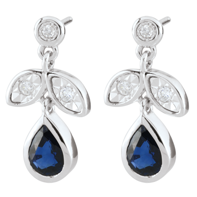 Orecchin Hesmé - Oro bianco - 9 carati - 2 Zaffiri - 6 Diamanti - 0.82 carati