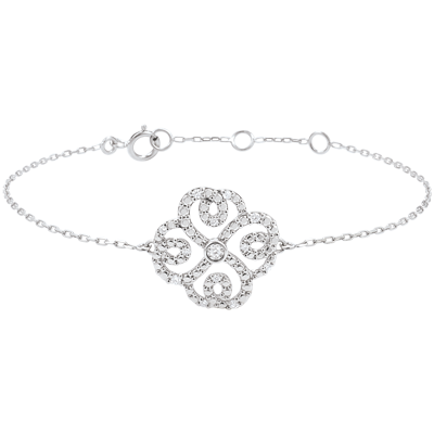 Sublime braccialetto in Oro bianco incastonato di diamanti bianchi e neri, montato su una catenina. E' disponibile in 18 cm, 17cm e 16cm. Applicazione di 14.5mm di lunghezza e 14.5mm di altezza.
